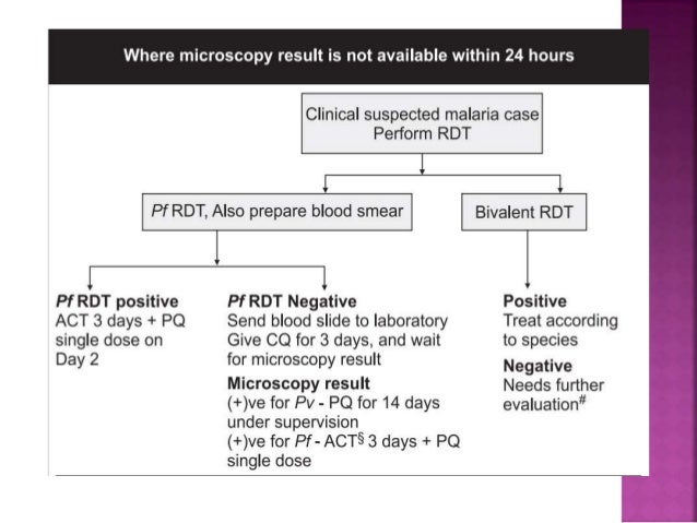 It is preferable that treatment for malaria should not be initiated until the diagnosis has been established by laboratory investigations. Icmr guidelines on diagnosis and management of rickettsial diseases in india (2.10 mb). Treatment of malaria (guidelines for clinicians). The guidelines on 'diagnosis and treatment of malaria in india (2009)' have been developed during the brainstorming meeting organized by the national institute of malaria research (nimr) and sponsored by who country office in india. After malaria parasites are detected on a blood smear, the parasite density should then be estimated. Severe malaria caused by p. Guidelines for diagnosis and treatment of malaria. Malaria diagnosis, treatment & prevention: Should be treated like severe p. If testing is not available, treatment of suspected malaria should not be delayed.